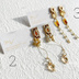 原神 鍾離をイメージしたイヤリング・ピアスです。 ①こつぶのマーブルカボションにスワロフスキーとフラワーチャームを合わせました。 ②地心をイメージしました。ひし形のスワロフスキーを合わせています。 ③地心をイメージしました。シトリンと淡水パールを合わせています。 ④先生カラーのマーブルカボションにスワロフスキーとロングチェーンタッセルを合わせています。