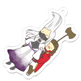 アクリルキーホルダー - 50 x 50 (mm)この商品はpixivFACTORYで作られた商品です。サンプル画像は完成イメージのため、実物と異なる場合があります。 以前描いたもので作ってみました。 天海さまが洗濯物の気持ちを味わってみたい天海さまと巻き込まれた金吾さんのアクキーです。