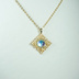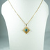 フュージングという技法で製作したガラスを透かしパーツと組み合わせたペンダントです。 約15㎜×約15mm チェーンの長さ 約40㎝