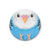 セキセイインコ、オパーリン、ブルー、メス【まるい鳥の正面の缶バッチ】