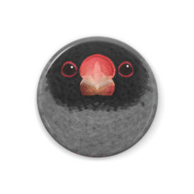 カオグロ文鳥、オス【まるい鳥の正面の缶バッチ】