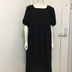 シンプルな黒のハンドメイドワンピースです。 衿ぐりが広めに開いており、そのまま頭からかぶってご着用頂くデザインです。 (背面のファスナー・ボタン等はありません。) ややハイウエストでバストからウエストはストンとしたシルエットになっています。 長袖カットソーなどのインナーと組み合わせてご着用頂けるよう、 通常Mサイズよりやや大きめのMLサイズ寸法で製作しております。 生地は身頃部分のみ二重になっておりますが、スカート部に透け感がありますのでインナーにペチコートやレギンス等を組み合わせてのご着用をお勧め致します。 -✳︎-✳︎-✳︎-✳︎- サイズ:MLサイズ (撮影用トルソーは9号サイズ使用) 出来上がり寸法: ・バスト・ウエスト共に98cm ・スカート丈69cm ・裾周り172cm ・衿ぐり開き62cm 素材:ポリエステル100% (ディスプレイによりガーゼ素材のように見える場合がありますがポリエステル素材となります。) 発送: ・あんしんboothパックにて発送 ・熊本県より発送(60サイズ) -✳︎-✳︎-✳︎-✳︎- ・縫製は家庭用ミシン・家庭用ロックミシン併用 ・個人制作のハンドメイド商品となっております。 ・猫を飼っています。 猫の毛は梱包時に可能な限り手作業で取り除いておりますが、混入してしまう事もあります事をご了承下さい。