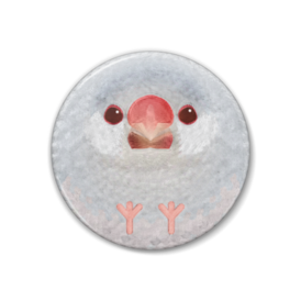 文鳥、シルバーイノ、オス【まるい鳥の缶バッチ】