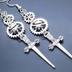 アンティークシルバー スチームパンク風ソード(剣)と歯車のスリムなロングピアス ゴシック パンク サージカル可