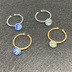 金具はサージカルステンレス製。 サイズは全て9号となります。 ※サージカルステンレスは大変硬い素材のため、サイズ調節は工具等が必要です。 ガラスカラーは2種類。 『ブルー・アクアブルー』 『グリーン・パープル』 金具カラーによりガラスの色味が異なりますのでご注意ください。 ガラス部はガラス作家様が1つ1つ作られたお品です。 微妙な大きさの違いや小さな気泡が見受けられる場合がありますが、手作りのガラスの個性であるとご理解いただければ幸いです。 ガラスはレジン製品とは異なり直射日光を避ける必要もなく、数年で劣化するという事もありません。 ※消毒液でガラス部分を拭かないで下さい。 表面が曇った場合はメガネ拭きなど柔らかい布で拭いていただく様お願い致します。 ※入浴時・プール・海水浴の際は外して下さい。 専用の接着剤を使用しておりますが、上記の場所でご使用されるとガラスが金具から離脱してしまう恐れがあります。