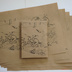 「鳥獣戯画」の絵柄の紙製ブックカバーです。 ブックカバーのサイズはA4判。天地左右を折って文庫、新書のカバーとして使うことができます。 絵柄の違う5枚で1セット。 京都の高山寺に伝わる絵巻物「鳥獣戯画」。日本最古の漫画ともいわれているこの作品、甲乙丙丁の4巻から成り、このうちうさぎ、猿、カエルなどが擬人化して描かれた甲巻が最も有名です。 甲巻の中から印象的な場面を選択し、トレースしました。 1枚目 うさぎと猿の水遊び 2枚目 うさぎとカエルの賭弓 3枚目 うさぎとカエルの相撲 4枚目 猿を追いかけるうさぎとカエル 5枚目 倒れたカエルと駆け寄るうさぎたち 使用した用紙は再生紙(コピー紙よりやや厚く、黄味がかった白)とクラフト紙(ブラウン)の2タイプ。お好みのほうをお選びください。ブックカバーとして使うだけでなく、小物の包装紙、写真撮影の背景紙などアイデア次第でいろいろ活用できます。折らずに発送します。 【素材】 再生紙 厚さ0.10mm クラフト紙 厚さ0.11mm 【サイズ】 A4判(幅297×高さ210mm)×5枚 【購入の際の注意点】 市販の用紙にレーザープリンタでモノクロ印刷したものです。 写真と実物では多少色味が異なる場合があります。