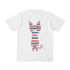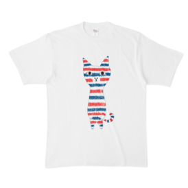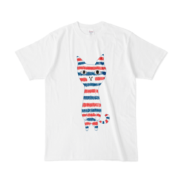 Tシャツ - XL - 白気鋭のクリエイター"NIKORASU GO"によるデザインT。 2013年INDIKETにてアート部門のグランプリ、他、自身のイラストを生かしたデザインワークを展開。特徴は、殆どの作品を仕上げ以外あえてCGを殆ど使わずハンドメイド。(CG作品もありますが、それも元形は全て手書き)ロゴは一文字一文字手作業で配置。またコピーライトの部分にも手を掛けております。自分のクリエーションを気に入ってくれ、応援してくれる少数の方に買っていただき、大切に着ていただければ幸せです タグ:ネコ マリン ボーダー 猫