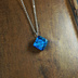フュージングという技法で製作したガラスのペンダントです。 約12㎜×約12mm×約6mm チェーンの長さ 約40㎝
