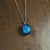 フュージングという技法で製作したガラスのペンダントです。 約13㎜×約11mm×約6mm チェーンの長さ 約40㎝