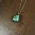 フュージングという技法で製作したガラスのペンダントです。 約15㎜×約10mm×約6mm チェーンの長さ 約40㎝