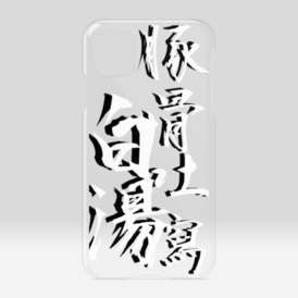 パワーワードグッズ(PWG)シリーズ。 透明に黒字で「豚骨吐瀉白湯」と書かれたiPhoneケースです。 黒と白の2色あります。 暗めなiPhoneの人におすすめ。 ステッカーなどでカスタムもあり。 この商品はpixivFACTORYで作られた商品です。サンプル画像は完成イメージのため、実物と異なる場合があります。