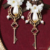 【作品のコンセプト】 鍵モチーフのピアス/イヤリングです。 アンティークな額縁や鍵をモチーフにしたクラシカルな耳飾りを作りました。 ビジューとパールがきらめくビーズ刺繍のアクセサリー。 アンティークなモチーフをたくさん詰め込み、お花のパールビーズで上品に可愛く仕立てました。 上品にきらめくアンティークな鍵の耳飾りをつけて優雅に、そしてクラシカルに一日を過ごしませんか? ⌒¨⌒¨⌒¨⌒¨⌒¨⌒¨⌒¨⌒¨⌒¨⌒¨⌒¨⌒¨⌒¨⌒¨⌒¨⌒¨⌒¨ 【おすすめのシチュエーション】 ビジューやリボン、パールなどで作った上品で可愛らしい耳飾り。 お花見や会席ディナーといったイベントごとでのおめかしにピッタリです。 また女子会やお買い物、カフェでお茶など、より日常に近いお出かけにもお使いいただけます。 パールとゴールドのチャームをたくさん使った煌めきたっぷりのアクセサリーです。 着けるとお顔周りが可愛さとキラメキであふれます✨ 大きめなので髪で隠れてしまわない存在感! 巻き髪などの耳が隠れてしまいがちなスタイルでも存分に可愛さを発揮してくれます✧ クローゼットにあるとびっきりに可愛いお洋服と一緒に着て、大好きなコーディネートで素敵な一日を過ごしてもらえると嬉しいです☺ ・気分をあげたいときに✧ ・かんばった自分へのご褒美に✧ ・いつもと違う自分になりたい方へ✧ “可憐で可愛い”アトリエ・トリアドールのアクセサリーはいかがでしょうか? ⌒¨⌒¨⌒¨⌒¨⌒¨⌒¨⌒¨⌒¨⌒¨⌒¨⌒¨⌒¨⌒¨⌒¨⌒¨⌒¨⌒¨ 【作品の詳細】 「ジュエリーのような輝きあふれるアクセサリーに✧」 ビジューとはフランス語で「宝石」を意味します。 宝石のように美しくカットされたガラスビジューを使用し、 当ブランドでは繊細な装飾が施された特別仕様のビジューで作っています。 こだわりの詰まったガラスビジューの周りに3mmの小さなパールをビーズ刺繍し、まるでジュエリーのような高級感のあるアクセサリーとなりました♡ アンティークな鍵に美しいビジューとたくさんのパール。 大好きなモチーフをたくさんの詰め込み、可愛くリボンを結んで作り上げた”ここにしかないアクセサリー”をお楽しみください✧ ⌒¨⌒¨⌒¨⌒¨⌒¨⌒¨⌒¨⌒¨⌒¨⌒¨⌒¨⌒¨⌒¨⌒¨⌒¨⌒¨⌒¨ 【作品の仕様】 ビーズ刺繍部分はフェルトに縫い付け、裏面を全てボンドで覆うので、糸の結び目や縫い目までかっちり固まり頑丈な作りになっています。 ビーズ刺繍は繊細なアクセサリーになりますが、たくさん使ってもらいやすいように土台や裏側でしっかりと丈夫になるよう作っておりますので安心してご着用くださいね。 size:4cm×8cmほど weight:5.3gほど オプションなしの場合、金属製ピアスになっておりますので、イヤリングや樹脂ピアスご希望の方は下記ページにてご注文ください。 https://atelier-torea-ac.booth.pm/items/3408470 販売数は即納品となっております。 受注制作できる場合がありますので、ご友人とお揃いで使いたいなど希望がありましたらメッセージよりご連絡ください。 ⌒¨⌒¨⌒¨⌒¨⌒¨⌒¨⌒¨⌒¨⌒¨⌒¨⌒¨⌒¨⌒¨⌒¨⌒¨⌒¨⌒¨ 金属アレルギー対応 樹脂ピアス 大人可愛い 大人ガーリー 量産型 ロリィタ クラシカル ご褒美 パーティー フラワー
