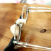 レンズ代わりのアクリル板とフレームの接着には「miyuki ロックボンド」を使用しています。可能な限りがっちり接着しているつもりですが、接着部が薄いため、ツルを広げたりしてるとレンズが外れる場合があります。再接着には黄変のしない無溶剤タイプの透明接着剤を使用してください。もしくは、アクリル板の断面に両面テープを小さく切って貼り、軽く仮止めする感じで対応してください。
