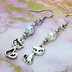 アンティークシルバーの猫モチーフとブルーとホワイトのパールビーズをつなげた大人可愛いピアス