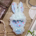 【商品概要】 ・ウサギの着ぐるみです。 ・10~11㎝くらいの大きさのぬいぐるみ用です。 ・うちで一番大きなぬいぐるみ(帽子着用)から型を取ったため、個体によってはぶかぶかであることがあります。 ・全て素人の縫製になります。運針がまちまちで雑なため乱暴にすると壊れます。 ・ボディには裏地はついていません。 ・生地の性質上、ふわふわした繊維が舞い散ったり、ぬいぐるみに付着したりします。 ・大部分の端の始末は「ほつれ止め液」を使用しております。 ・向かって右側の肩(ぬいぐるみの左肩)部分は着用しやすいように少し空いております。 ・リボンは他のモチーフと取替えられるように軽く留めてあります。 【注意事項】 ・ウサギの着ぐるみのみの頒布です。画像にあるものは付属しません。 ・素人の手作りのため、個体差があります。 ・モニターでご覧になっているお色と実際のお色は違う場合がございます。また、柄の出方は個体によって異なります。 ・左右のバランス、特に耳の配置等おかしな箇所もあります。 完璧なものをお求めの方はご購入をご遠慮下さいませ。 ・その他、少しでも気になる点がございます場合はご購入をご遠慮下さいませ。 【発送につきまして】 ・あんしんBOOTHパックでの発送となります。 ・送料は全国一律370円、別途かかりますのでご注意ください。 ・発送はご注文が確定してから2日~7日程度で行います。 ・海外への発送は行っておりません。 【その他】 ・キャンセルは受け付けておりません。熟考頂きご納得した上でご購入下さい。 ・ご質問等は必ず『ご購入の前に』メッセージよりお問合せ下さい。 *以上、色々申し上げましたが、ご理解頂ける方のみご購入をご検討頂けましたら幸いです*