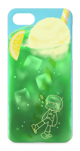 この商品はpixivFACTORYで作られた商品です。サンプル画像は完成イメージのため、実物と異なる場合があります。 ▲これはiPhone用ケースです。 表はただのメロンソーダ。裏はメロンソーダの中で泳ぐ十四松くんがいるスマホケースです。黄色いレモンは十四松くんカラー!