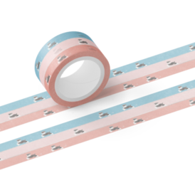 マスキングテープ - テープ幅 20mmかけっこ大好きシュナウザー🐾水色! 5匹のシュナウザーが元気にかけっこしています!3色の切り替えが銀色ラメになっているのがポイント! この商品はpixivFACTORYで作られた商品です。サンプル画像は完成イメージのため、実物と異なる場合があります。
