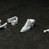 【メガミデバイス用】メガミヒール1 メガミデバイス用の足首パーツになります。 ※調整で他のキットにも使用可能です。 大型のくるぶしガードがついており、主張しすぎず素体足のアクセントになるよう設計しています。 くるぶしガードは稼動式で足首の前後の動きを妨げず、塗装後に組みつけが可能なので塗装もし易い構造となっています。 また通常のくるぶしガードは大型の為、朱羅の武装足やバレッツナイツのアーマーなどと干渉するため、干渉しない小型タイプもおまけでお付けします。 足の脛から足の甲にかけてのラインが綺麗に続くよう調整していますのでガードを付けなくても綺麗にまとまります。 パーツ点数8点の未塗装組立キット。 足首の穴は開いてありますがキツイと感じる場合は、2.5mmのピンバイスなどで調整を行って下さい。 ※組立てワンポイント 組立てには、3Dプリンタ出力時のサポートからの切り離しが必要になります。 サポートは、プラモデル用のニッパーで一箇所ずつ、少し残して切り離していきます。 本体から切り離したサポートは取り除きながら作業すると奥のほうのサポートも切り取りやすくなります。 本体に少し残ったサポートは、ヤスリやデザインナイフなど丁寧に削ってください、切削性はよいので、400番~600番ぐらいのヤスリで簡単に削れます。 もしサポートの痕がえぐれてしまうなどがありましたら、ゼリータイプの瞬間接着剤+硬化剤やパテで埋めることで修正が可能です。 ※写真のフィギュア・ドールは付属しません。 ■サイズ:メガミデバイス用(1/12) ■パーツ数:8点 ■未塗装・組み立てキット ■光造形3Dプリンター出力品のため、積層痕・サポーターがあります。 ■説明書付き ■組立てにはニッパー、ヤスリ、接着剤などが別途必要になります。 穴がきつい場合などは調整にピンバイスなどが必要になる事があります。 ■原型製作:鍛冶