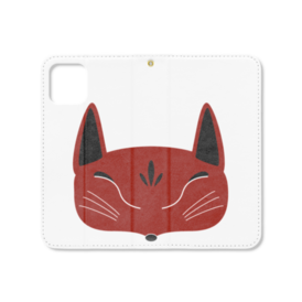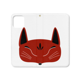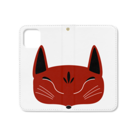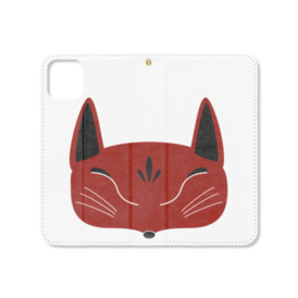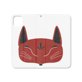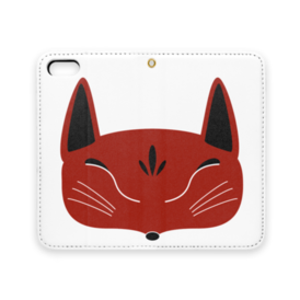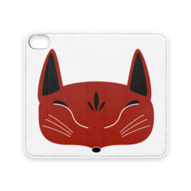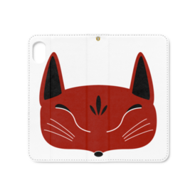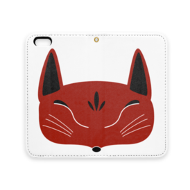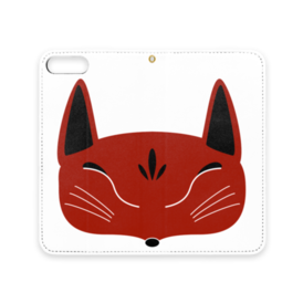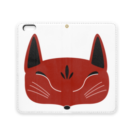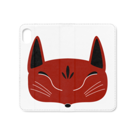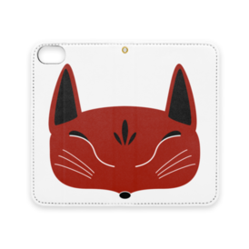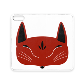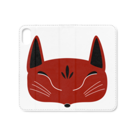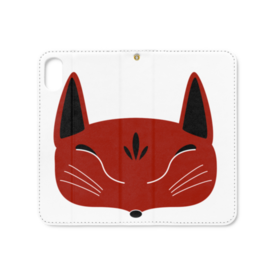 赤狐面の手帳型iPhoneケース(ベルトなし)。 白狐面、赤狐面、黒狐面を販売中。