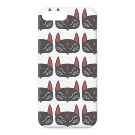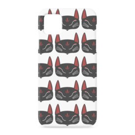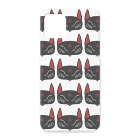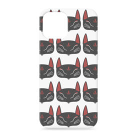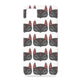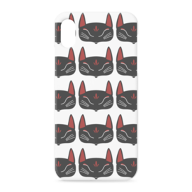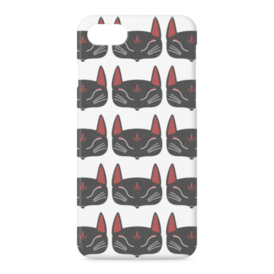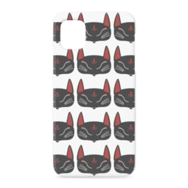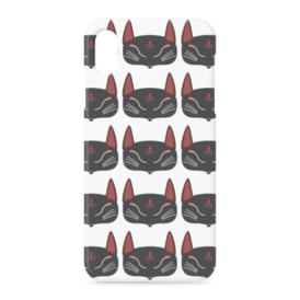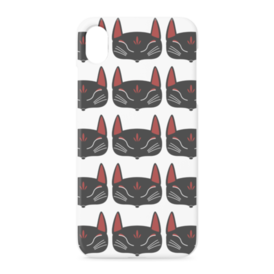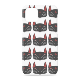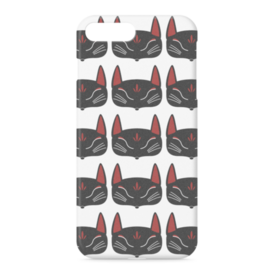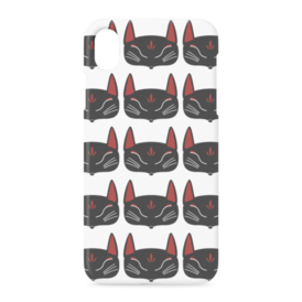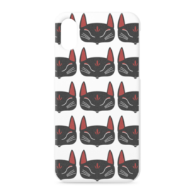 黒狐面 総柄のiPhoneケース。 白狐面、赤狐面、黒狐面を販売中。