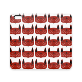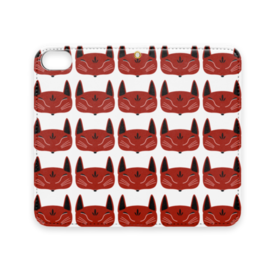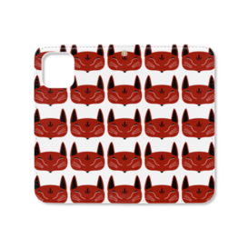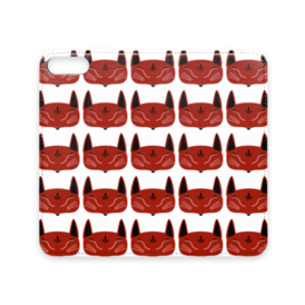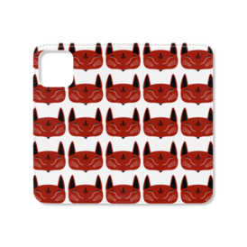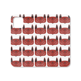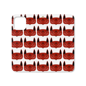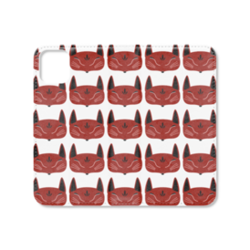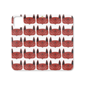 赤狐面 総柄 手帳型iPhoneケース(ベルトなし)