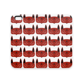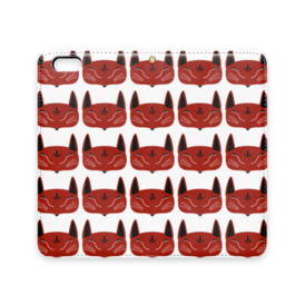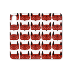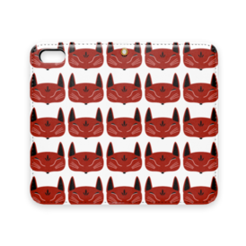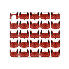 赤狐面 総柄の手帳型iPhoneケース(ベルトなし)。 白狐面、赤狐面、黒狐面を販売中。