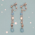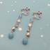 使用素材:ミルキーブルークォーツ・シェル・スワロフスキー 基本金属:ロジウム(シルバー・銀) 長さ:飾り部分5㎝ ※ピアスに変更可能です。お支払いの直後にご連絡ください。 さわやかな色合いのビーズが軽やかに耳もとで揺れます。 SOARAのキャラクターイメージイヤリングにはシルバーカラーのメタルパーツを共通させています。 ※送料には梱包代が含まれています。クリックポスト・宅急便コンパクトのいずれかで発送いたします。 ※天然石(シェル・淡水パールなどを含む)ビーズは天然物のため、色味や大きさや形状が粒によって異なります。また、通し穴周辺を中心に割れ・欠け・ひび・傷あるものもございます。こちら、ジュエリーとは異なりますのでご了承お願いいたします。 ※天然石・素材の名称・色・形状は素材購入時の商品の記載によっています。