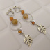 使用素材:ルチルクォーツ・アベンチュリン・スワロフスキー 基本金属:ロジウム(シルバー・銀) 長さ:飾り部分6㎝ ※ピアスに変更可能です。お支払いの直後にご連絡ください。 樫をイメージしたリーフパーツを使用しています。 ルチルクォーツには針状のインクルージョン(含有物)があるため、光の当たり方、角度によってきらめくようになります。 ※送料には梱包代が含まれています。クリックポスト・宅急便コンパクトのいずれかで発送いたします。 ※天然石(シェル・淡水パールなどを含む)ビーズは天然物のため、色味や大きさや形状が粒によって異なります。また、通し穴周辺を中心に割れ・欠け・ひび・傷あるものもございます。こちら、ジュエリーとは異なりますのでご了承お願いいたします。 ※天然石・素材の名称・色・形状は素材購入時の商品の記載によっています。
