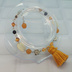 使用素材:オニキス・アベンチュリン・スワロフスキー 基本金属:ロジウム(シルバー・銀) 長さ:14㎝+アジャスタ分5㎝ ツキコットのアクセサリー(ネックレス)としてもご使用いただけるブレスレットです。 ※タッセルはハンドメイドのため、ひとつひとつ大きさ・長さが異なることをご了承ください。また強い力には弱いです。 くせの付きにくい素材となっておりますので、乱れた際には軽く指で整えていただくだけで房が落ち着きます。 ※送料には梱包代が含まれています。クリックポスト・宅急便コンパクトのいずれかで発送いたします。 ※天然石(シェル・淡水パールなどを含む)ビーズは天然物のため、色味や大きさや形状が粒によって異なります。また、通し穴周辺を中心に割れ・欠け・ひび・傷あるものもございます。こちら、ジュエリーとは異なりますのでご了承お願いいたします。 ※天然石・素材の名称・色・形状は素材購入時の商品の記載によっています。 ※撮影小物・ツキコットは商品に含まれません