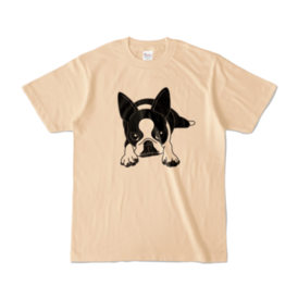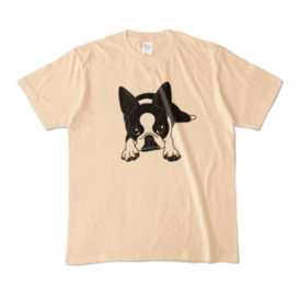 ボストンテリアのコチのカラーTシャツ-ナチュラル
