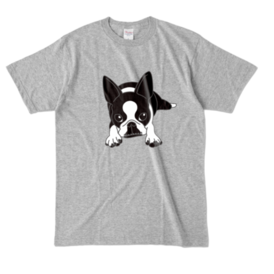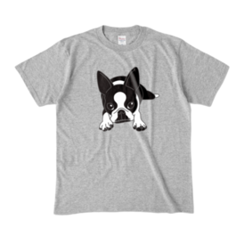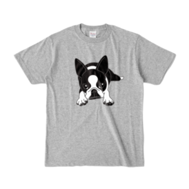 ボストンテリアのコチのカラーTシャツ-杢グレー