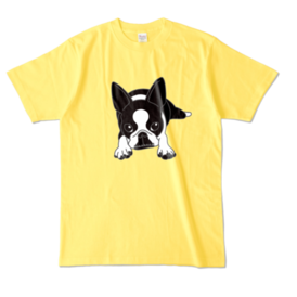 ボストンテリアのコチのカラーTシャツ-イエロー