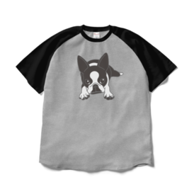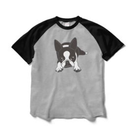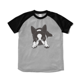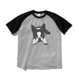 ボストンテリアのコチのラグランTシャツ-杢グレー ×ブラック