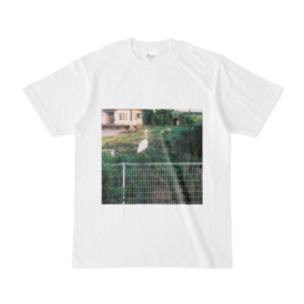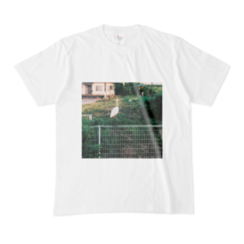 ニタチャン家の目の前のフェンスに止まってた鷺Tシャツ