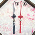 *全長:約20㎝(ストラップ部分から房の先端まで) *ストラップ:約10㎝ *花径:約3㎝ *玉:とんぼ玉(特注品) ①組紐:砂色 × とんぼ玉:薄いピンク ②組紐:砂色 × とんぼ玉:薄い紫 ③組紐:濃紺 × とんぼ玉:透明の地に白の水玉 ④組紐:赤 × とんぼ玉:白の地に青緑の文様 ⑤組紐:砂色 × とんぼ玉:薄い緑 ⑥組紐:砂色 × とんぼ玉:薄い赤