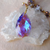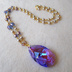パープル×ブルーオーロラのオーストリア製クリスタルガラスを使用した大粒のペンダントです。 背景が白い場合は、オレンジが混ざったようなパープルに。 背景が黒い場合は、青みの強いヴァイオレットに変化します。 着る服の色で、違った色合いを見せるエレメントです。 チェーン部分にはグラスパールとチェコビーズを使用しています。 また、窓辺に飾っておくとサンキャッチャーになり、お部屋に虹色の光が反射します。 ●ペンダント以外の撮影用小物は付属しません● 使用素材/大きさ ・オーストリア製クリスタルガラス:約38mm×22mm ・チェコビーズ(パープル系):約4/6/8㎜ ・グラスパール(ベージュ系/ジャパンヴィンテージ):約5mm 長さ:約60cm ※グラスパールはヴィンテージ品のため、微細なスレなどがございます ※トップの上部中央にみえる刻印はスワロフスキー・ストラスブランドのオリジナル製品に刻印されるストラスマークです ※お使いのモニター等により、画像の色と実物の色が異なる場合がございます