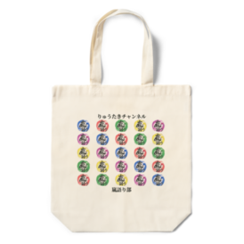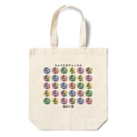 りゅうたきチャンネル【嵐語り部】のグッズ 【商品名】 エコバッグ 【種類・カラー】 全2種類 ※カラーは全てナチュラル・サイズは1種類 ・6色Ver. 5色Ver. 【サイズ】 ・本体サイズ:360mm×370mm×マチ110mm ・持ち手サイズ:25mm×470mm 【おすすめの使用例】 ・スーパーなどの日用品の買い物に! ・マチがあって使い勝手が良い! ・薄手でかさばらず、持ち運びしやすい! YouTubeのメンバーシップ限定で使用しているスタンプ・バッジを「5×5」&「5×6」で配置しました。 特に「5×6」はあの大人気スマホゲーム、"〇ズドラ"の配置と同じなので特別感があります! カラフルなので、お買い物中に誰かから声を掛けられちゃうかも?♪ ※綿100%の片面プリントなので価格は少し高めです ◆重たいものを入れる予定がある方は「トートバッグ - Mサイズ」がおすすめです!◆ https://ryutaki.booth.pm/items/3788267 【以下引用】 素材:綿100% シーチング 厚さ:3.5オンス(oz) カラー:ナチュラルのみ 印刷:インクジェットプリント方式 【印刷について】 ※生地に直接インクを吹き付けてフルカラー印刷を行うインクジェットプリント方式となります。 ※1mm 以下の細い線は再現できない可能性がございます。ご注意ください。 ※白色の印刷はできません。白引きをせず、素材の風合いを生かした印刷となります。印刷面にも点々とした綿花素材が出ますのであらかじめご了承ください。 ※蛍光色など彩度の高い色は再現できない場合がございます。 【商品の匂いについて】 綿100%で作られたナチュラルカラーのバッグは素材に天然のままの綿花を使用しているため、藁や草木のような匂いがあったり、熱を加える加工により素材に含まれる油分の焦げや、生産の際に再生紙を使用したカートンの匂いが移り、天候や湿度などによって商品に匂いが発生したりする場合があります。 匂いは時間経過とともに軽減されますが、日陰の風通しのよい場所で数日間保管していただく、もしくは一度洗濯や消臭剤をかけていただくとより軽減が早まります。 【仕様について】 ※折り畳んだ際に入れるミニ袋や、留め具などは付属しておりません。 ※やや透け感のある生地となっております。 ※重い荷物を入れる際は、バッグに負荷がかかりすぎる場合がございますので、ご注意ください。