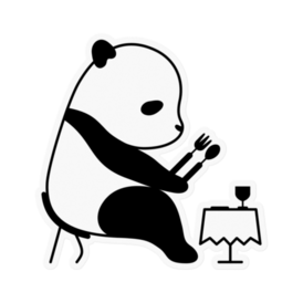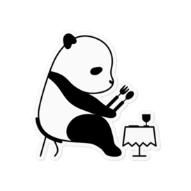 腹ペコなパンダ。 でも小さいテーブルにあるのは小さいお皿。 これではお腹は膨れません。 さらに重くてイスも折れています。 頑張っているんです。