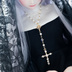 パールチョーカー+ロザリオのセット商品です。 高級に輝くスワロフスキーのガラスパールとビーズで制作したキラキラロザリオをです! チェーンから一つ一つ心がけて制作しております(*´ω`*) チョーカーとロザリオは別々でも着用できます。