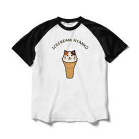 アイスクリームにゃんこラグランTシャツ ホワイト×ブラック