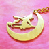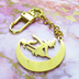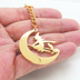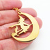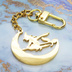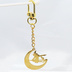 ステンレス製 ホウキにまたがる魔女と猫と三日月のキーホルダー ゴールドカラー バッグチャーム 魔法使い 猫 シルエット
