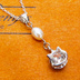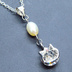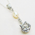 シルバー925 かわいい猫フレームのスワロフスキー(9色選択)と淡水パールの大人可愛いネックレス