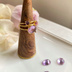 👑カラー 春のダンデカラー祭り🌸🎉✨ とても綺麗な色味のピンクアメシストです。 1cmほどの横幅があるので今まで販売をさせていただいてきたリングと比べてもボリュームがあります✨◎ 写真のように小粒たちと重ね付けしても可愛いです🥰 大粒ですがカット面がローズカットになっているのでギラギラとした光り方ではなく、やわらかく光を包んでウルウルと光るので愛らしいイメージです。 個人的にローズカットはアンティーク風にも見えて大好きなカットで💍✨ オーナーンデのクラシカルな雰囲気のスーツにもぴったりと思い、一目惚れしてお取り寄せしてしまいました。 太陽の下で見る透明感のあるアメシストはうるうるキラキラでテンションが上がりました…!📸💥 ☆石の数に限りがあるので在庫販売のみとさせていただきます。 お手数をおかけしますがご購入後に号数をお知らせください💍 7〜13号 ご用意可能です🙆♀️ 使用石: ピンクアメシスト 全長: 横幅1cmほど 素材: Silver925 18KGP仕上げ ※ハンドメイド作品ですので、工場製品ほどの強度ではありません。 優しく扱っていただきますようお願いいたします。 ※天然石には、クラック(ヒビ)や、欠け、色ムラが見られる場合がございます。 素材の魅力としてご理解いただけましたら幸いです。