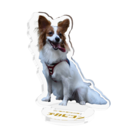 アクリルフィギュア - 50x50mmこの世にはパピヨンのグッズが少なすぎるので衝動的に作りました。 パピヨンなのに8キロ、柴犬よりも早く走る、夜は人の布団で寝る、 でもかわいい。 超重量級超高速のパピヨン粒子を吸えるタイプの合法アクリルスタンドです。 ※デカピヨングッズの売り上げはすべてデカピヨンのおやつ代になります。