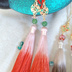 必ずお読みください。 十二国記のイメージタッセル。 インテリアや中華コスチュームにおススメです。 1、景(赤色のタッセル) 2、泰(灰色のタッセル) 3、延(青色のタッセル) 〇サイズ 全長約25㎝ 〇ご注意 ハンドメイド品のため、ひとつひとつ色合いが違います。製作には注意しましたが、既製品よりも破損しやすいかもしれません。 翡翠、ガラス玉を使用していますので、お取り扱いにはご注意ください。 〇お手入れ チャーム、ガラス玉、翡翠は柔らかい布で汚れを優しくふき取り、タッセル部分は清潔な櫛でとかしてください。 〇色味 可能な限り現実の色味となるよう撮影していますが、お使いの端末によっては多少違いの出る可能性があります。参考として画像をご覧ください。 〇発送 クリアケース、プチプチ包装の上、あんしん匿名パック、ネコポスにてお届けします。 〇修理、交換 到着後3日以内に、購入品を必ずお確かめください。破損が見られた場合は3日以内にメッセージへご連絡ください。修理交換いたします。しかし、4日以降のご連絡の場合は修理交換の対象ではありません。ご了承ください。