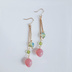 なんとイチゴの形に似ている可愛いオパールピンク系のチェコビーズとグリーン系のチェコビーズ達をそれぞれ異なる長さのゴールドバーと合わせたシンプルでお洒落な揺れるタイプのロングピアスとなっております。 メインのお色は春を感じるピンクとオリーブグリーンの2色、ゴールド金具と合わせ暖かく優しい雰囲気に仕上げました☆ 春色がお好きな方や揺れるタイプの作品がお好きな方、イチゴがお好きな方にもおすすめの作品となっております。 ロングサイズで揺れるタイプの作品となっておりますので、どんな髪型に合わせてもアクセントとしてご利用頂けると思います☺ アレルギー対応のピアスやイヤリングへの変更についてはご注文時にオプションよりご希望金具をお選び下さい ※こんな方におすすめ♪ *大切な方へのプレゼントに *いちごモチーフがお好きな方に *揺れるデザインの作品がお好きな方に ☆チェコビーズ ピンクオパール ストロベリー 約10mm ☆ファイアポリッシュチェコビーズ 6mm ☆チェコビーズ オリーブ ラウンド型 4mm玉 ☆メタルビーズ ゴールド ☆ゴールドバー 2サイズ ☆Tピン ☆三角カン ☆丸カン ☆ピアス用金具(フック式☆ゴールド) 長さは約6.5cmとなっております。(1cm程のピアス金具を含む)