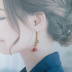 2連ゴールドバーとチェコビーズの春色ロングピアス/イヤリング