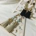 ご覧頂きありがとうございます。 (商品) 東京リベンジャーズ/イメージピアス/灰谷兄弟/蘭/竜胆 *東京リベンジャーズの灰谷兄弟、灰谷蘭と灰谷竜胆をイメージして作りましたピアスになります。 黒のタッセルが蘭バージョン、もう一方が竜胆バージョンになります。 タッセル使用。 *当方が作製しましたピアス、新品未使用になります。 どちらも全体約7センチです。 注意:ピアスパーツの部分の色味等が多少ロットで変更になる場合があります。 +110円でイヤリングへの変更可能です。 商品一覧にあるイヤリングに変更もカートに一緒に入れてください。 (注意) 丁寧に作りましたが、素人が作ったものです。 作りの甘い部分があるかもしれません、気になる方はご遠慮ください。 目立った汚れはないと思いますが、小さなパーツもあり、初期傷等もあるかもしれません。あくまで素人判断ですのでご了承ください。 アレルギーのある方、完璧なものをお求めな方はご遠慮ください。 人の手に一度渡っているものですので、 ノークレームノーリターンでお願い致します。 できるだけ実物のお色に近いものをあげていますが モニター環境によって多少の色の差があると思いますのでご了承ください。 発送は、普通郵便にてお送りいたします。普通郵便の性質上 郵送中の事故や紛失に関して責任を負うことができませんのでご了承ください。