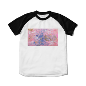 ラグランTシャツ - XL - ホワイト×ブラック油絵作品をあしらった、カジュアルなラグランTシャツです。 黒い袖と鮮やかなピンクが見事にマリアージュしています。大きめに配置されたピンク色のキャンバスは、窓から覗く花の木のよう。水面にも見えるかもしれません。想像豊かに、アートを着る楽しみを是非。 ※この商品はpixivFACTORYで作られた商品です。サンプル画像は完成イメージのため、実物と異なる場合があります。 ※注文が確定してから工場で製作に入りますので、お届けまでにお時間をいただきます。ご了承ください。