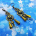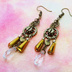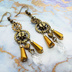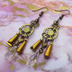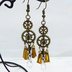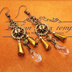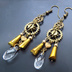 スチームパンク風 アンティークゴールド メタルタッセルピアス ガラス ラインストーン 歯車 ハート サージカル可